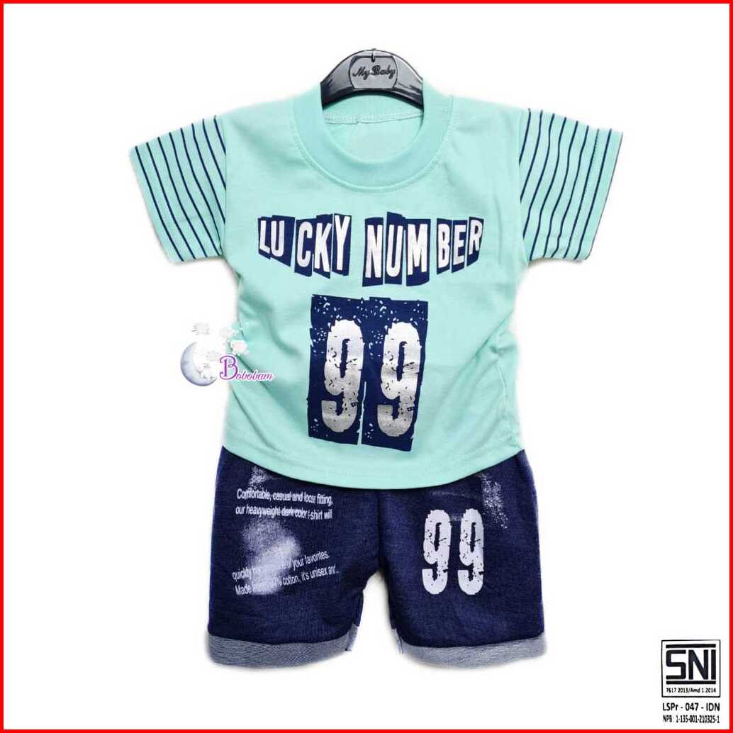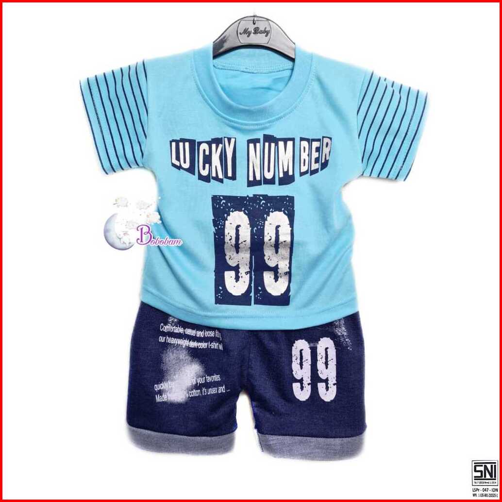 2 Baju Bayi Lucky Number 99 Setelan Anak Laki-laki Setelan Anak 1 Sampai 3 Tahun