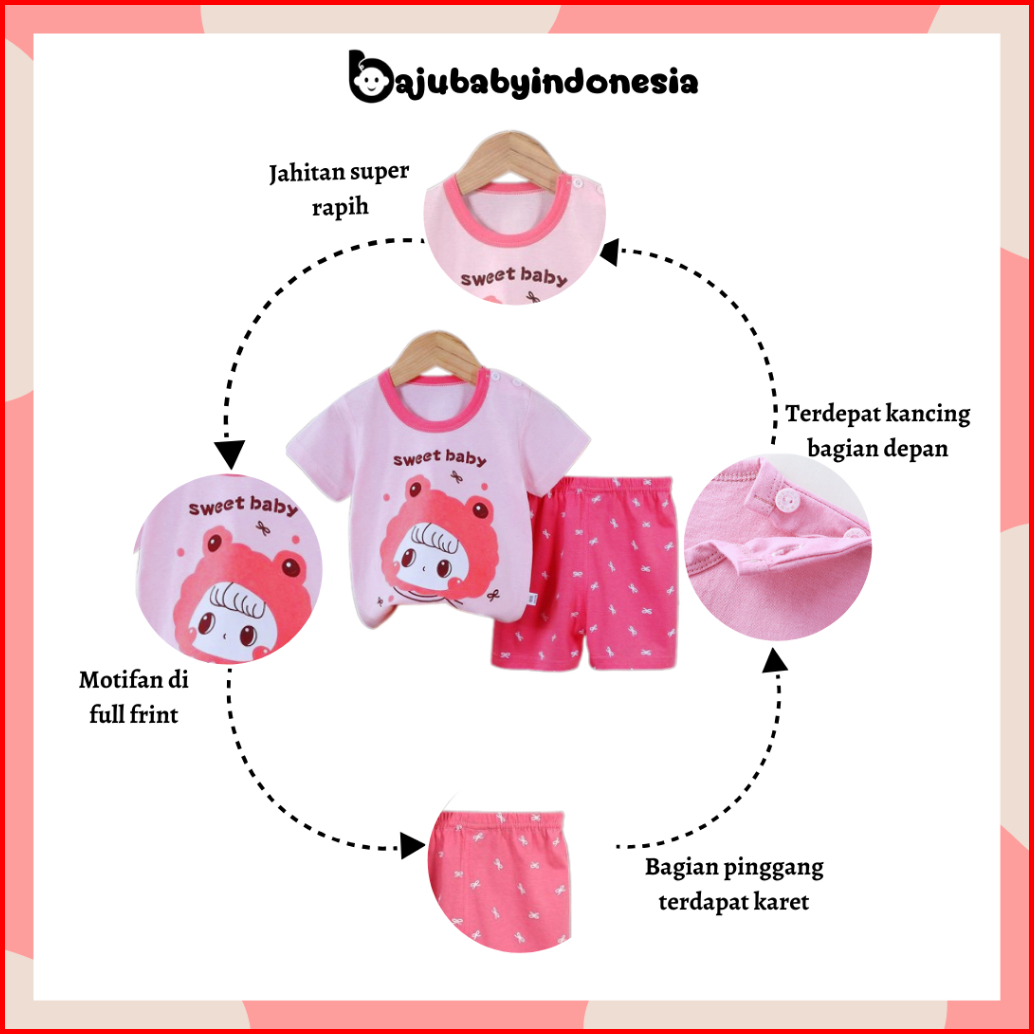 Bbi Setelan Anak Laki Laki Perempuan Set Bayi Cowok Cewek Baju Harian Lengan Pendek Motif Karakter Kartun Lucu Pr