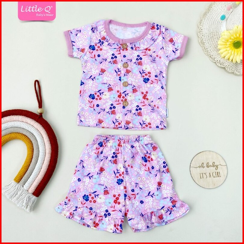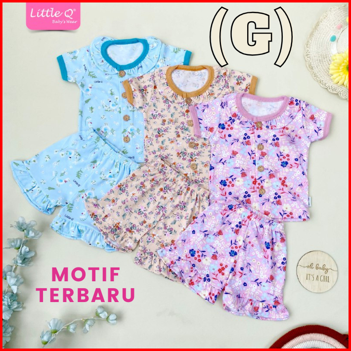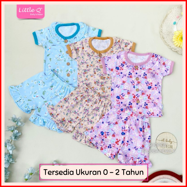 3 Stel Sml Motif Setelan Stelan Set Pakaian Baju Lengan Pendek Ruffle Rempel Kancing Depan Celana Pendek Anak Bayi Perem