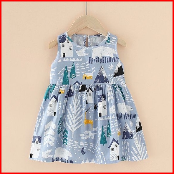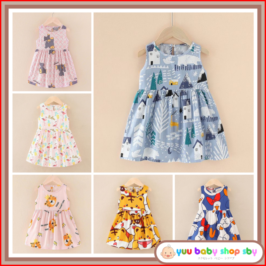 Ybss Dress Anak Perempuan Motif Karakter Animasi Lucu Fullprint Gaun Bayi Cewek Usia 0 4 Tahun Bahan Katun Jepang Adem S