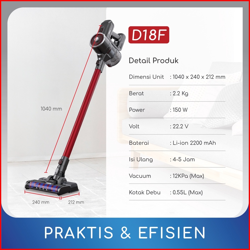 Dibea D18f Cordless Stick Vacuum Cleaner