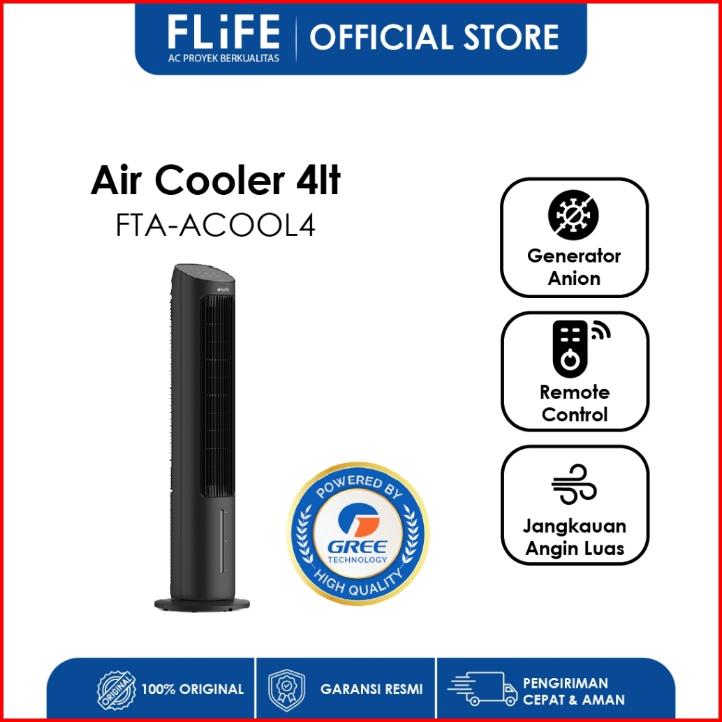 Flife Tower Fan Air Cooler - Anion Generator - Penyejuk Ruangan - Humidifier - 4 Liter - Fta-acool4