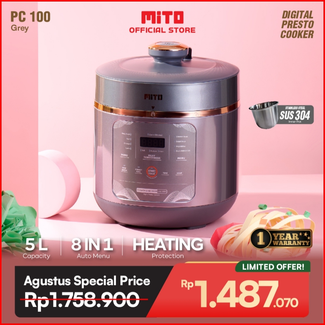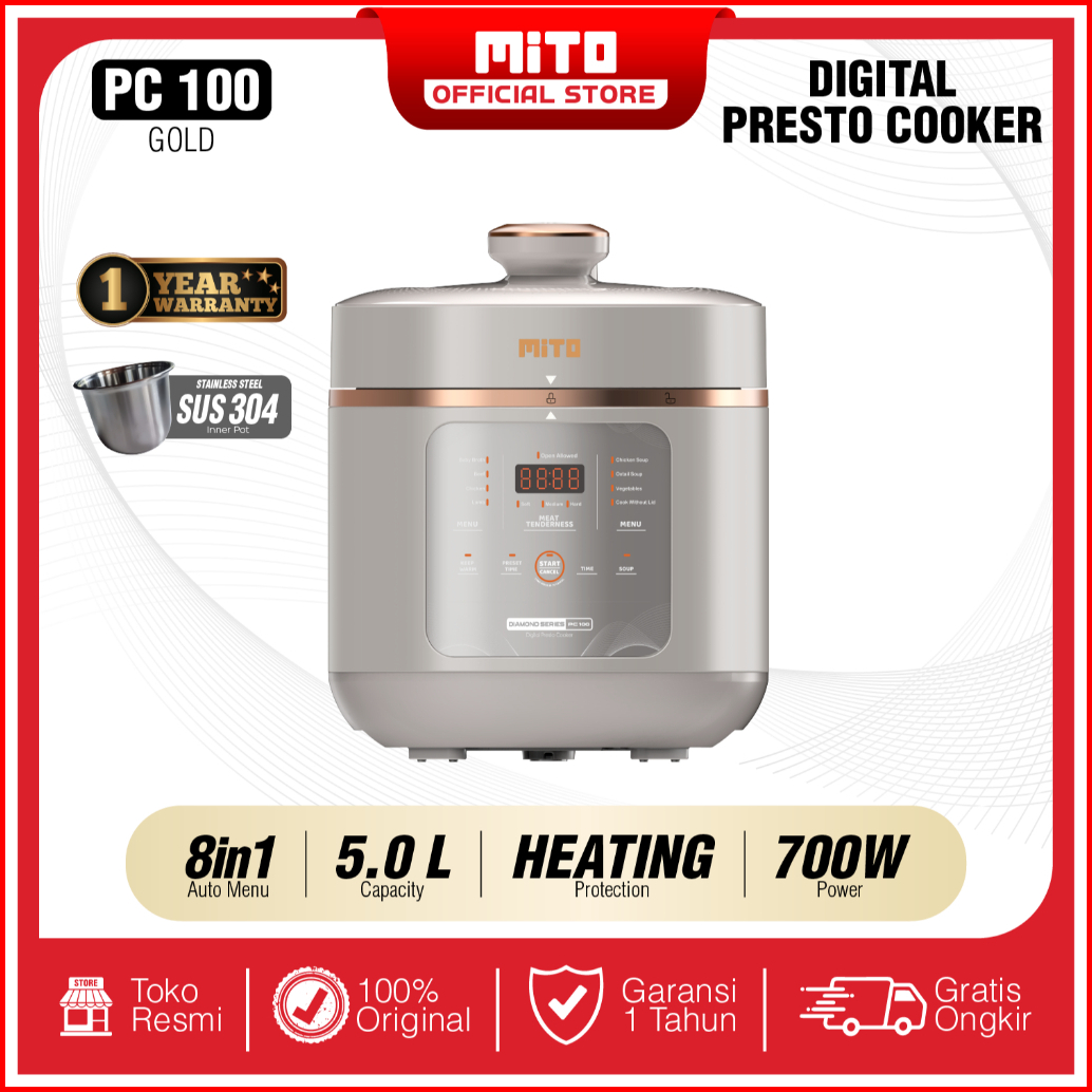 Mito Presto Cooker Pc100 5l 700watt - Digital Pressure Cooker - Diamond Series