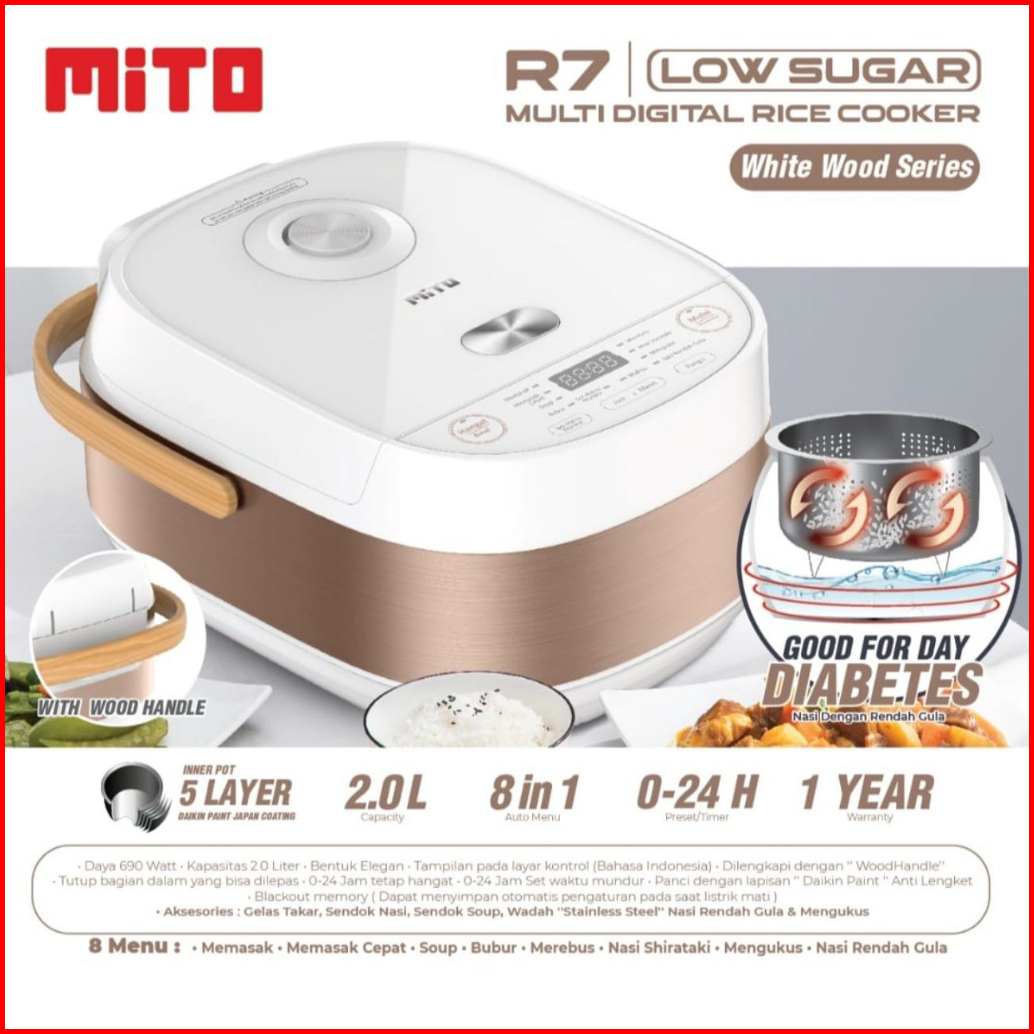 Mito Rice Cooker Multi Digital R7 Kapasitas 2 Liter 8 In 1