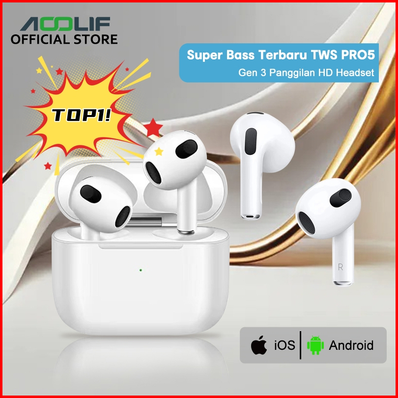 Aoolif Tws Terbaru Gen3 Airbuds Headset Bluetooth Tws Pro5 True Wireless Bluetooth Earphone Gaming Handset Android Earbu