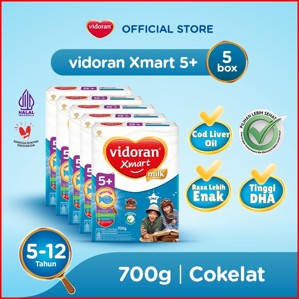 Vidoran Xmart 5 Coklat 700gr Susu Formula Pertumbuhan Anak 5 - 12 Tahun - 5 Box - Exp 01.2027