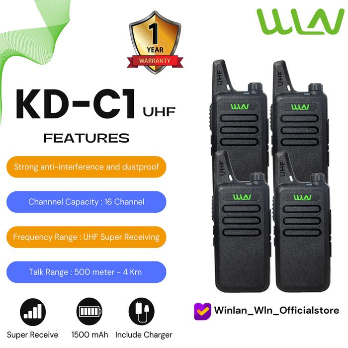 DP 0 WLN WINLAN HT WALKIE TALKIE KDC1 UHF ( 4PCS ) TANPA DEKSTOP HITAM