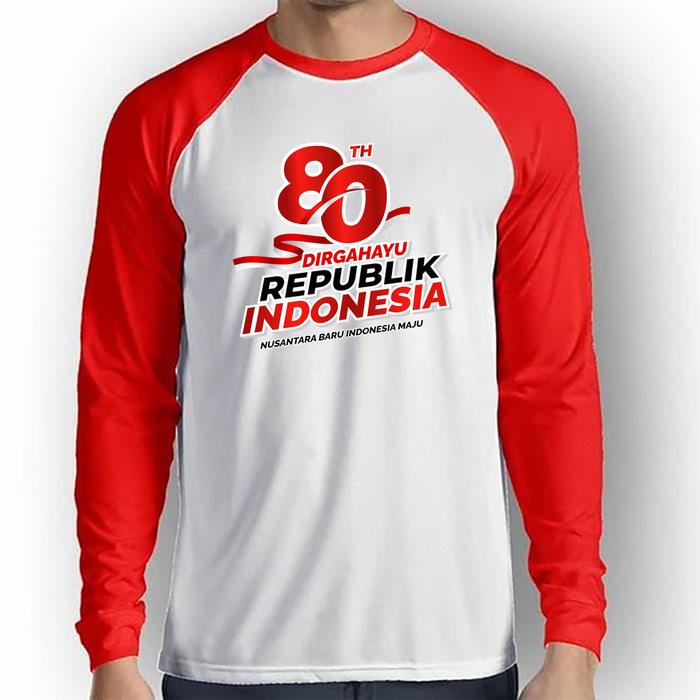 DP 0 KAOS RAGLAN PRIA LENGAN PANJANG KAOS DIRGAHAYU INDONESIA KAOS 17 AGUSTUS 1945 PUTIHMERAH A M