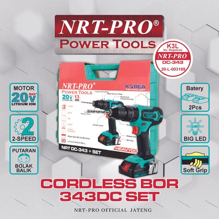 TERLARIS NRTPRO DC 343 BOR CORDLESS DRILL BETON IMPACT TEMBOK BATERAI MESIN