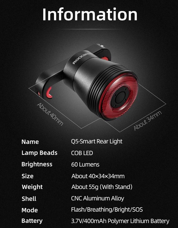TERLARIS ROCKBROS LAMPU BELAKANG SMART BICYCLE BRAKE LIGHT SENSOR Q5 ORIGINAL Q50