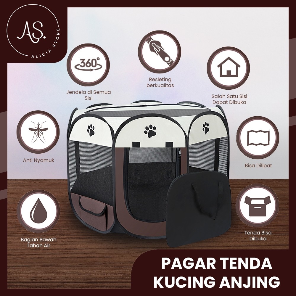 Pagar Tenda Kucing Anjing Kandang Lipat Besar dengan 8 panel Pagar Lipat Portable
