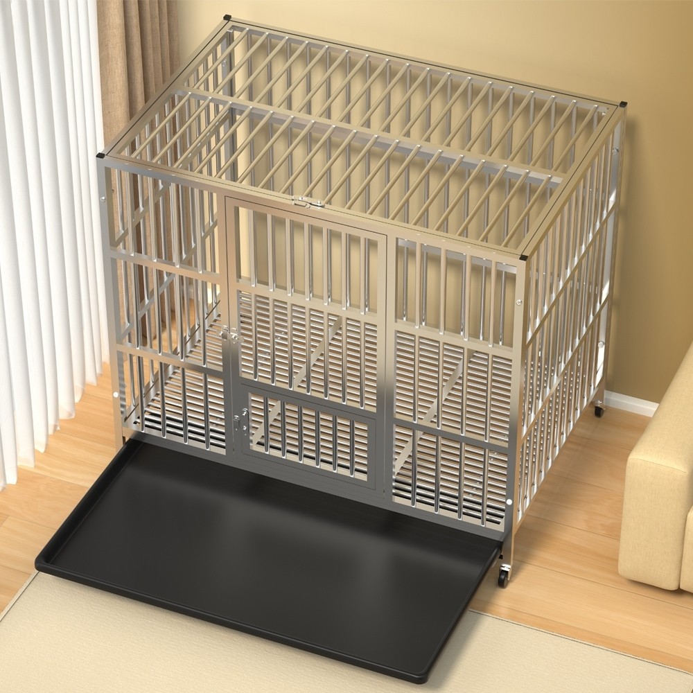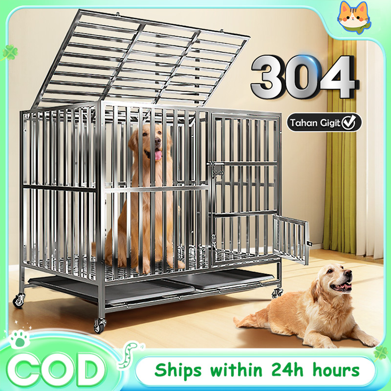 Kandang Anjing Besi Anti Karat Tebal untuk Anjing Sedang Besar Bisa Dilipat dengan Roda Praktis