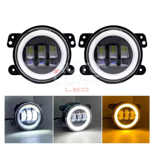 LAMPU MOBIL / 2 PIECES LAMPU FOGLAMP LED 4 INCH|3 LENSA FULL RING|2 WARNA (PUTIH & KUNING) | 60W|COCOK UNTUK OFF-ROAD,