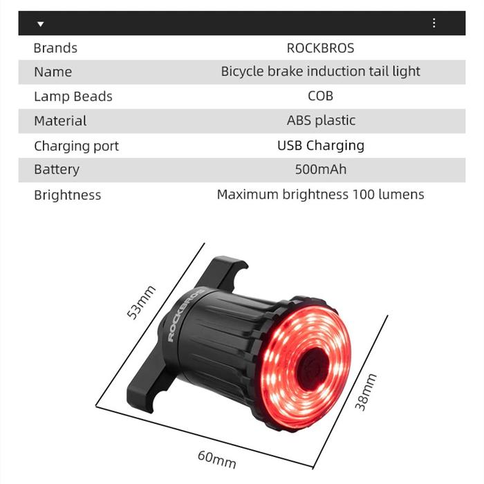 TERLARIS LAMPU BELAKANG ROCKBROS WR05 7 MODE BICYCLE TAILLIGHT AUTO BRAKE WR05