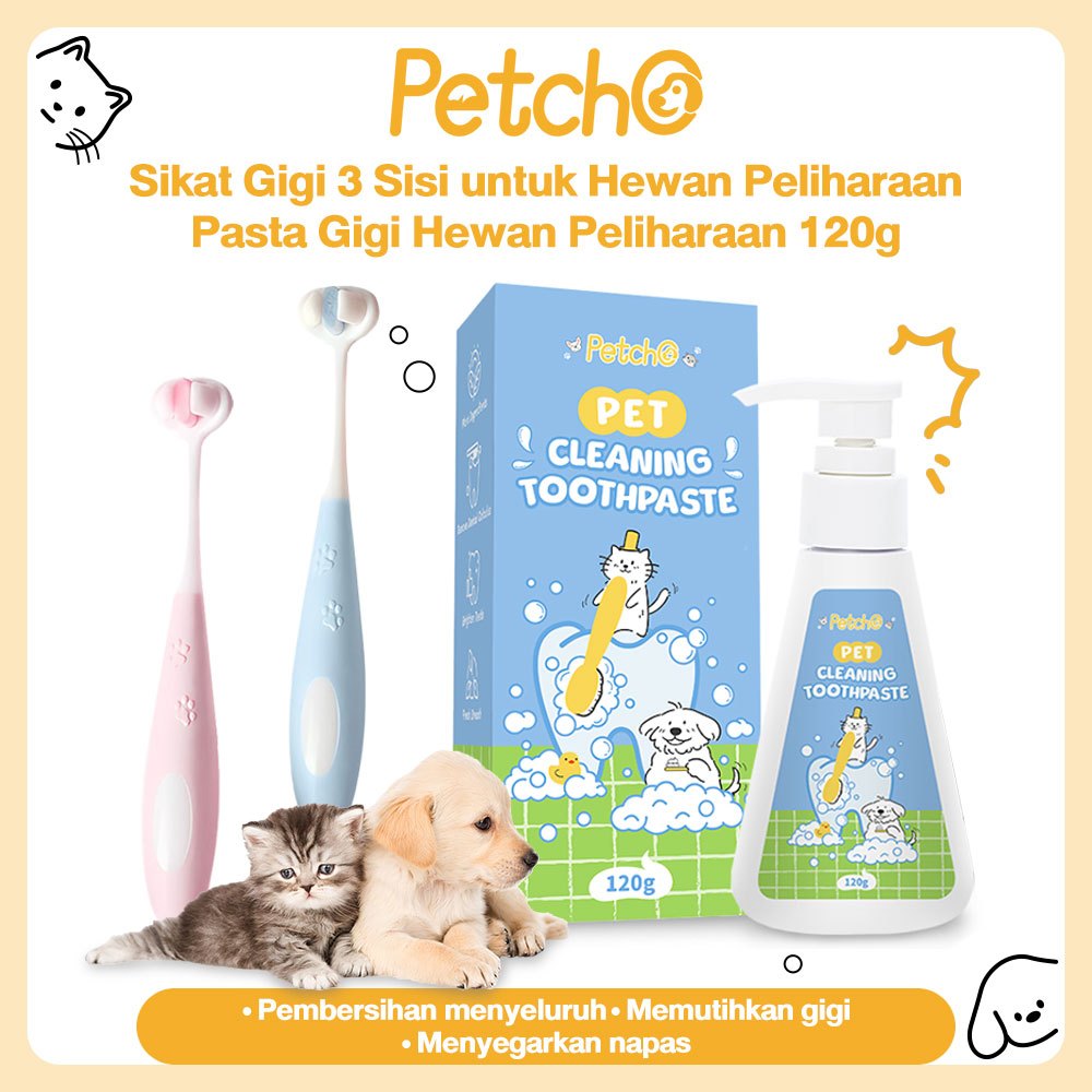 Petcho Pasta Gigi Anjing Kucing + Sikat Gigi Perawatan Mulut, Menghilangkan Karang Bau Mulut Set Perawatan Hewan Pelihar