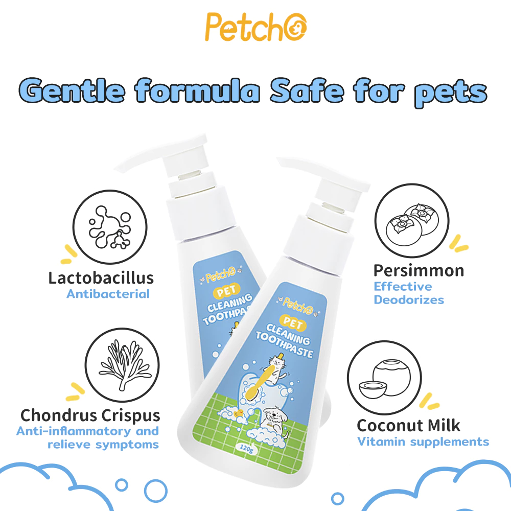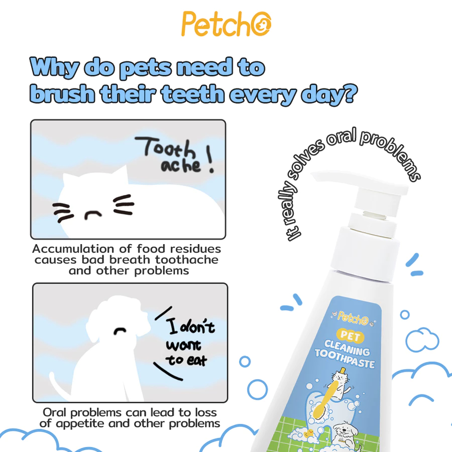 Petcho Sikat Gigi + Pasta Gigi Anjing Kucing Paket Perawatan Mulut Bulu Lembut Pembersih Gigi Hewan Penghilang Bau Mulut