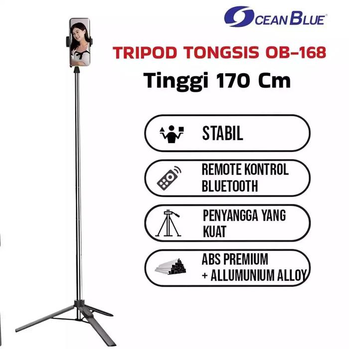 TERLARIS OCEANBLUE TRIPOD BLUETOOTH REMOTE TONGSIS SELFIE STICK 3IN1 OB168 170 CM LIVE VIDEO KONTEN KREATOR