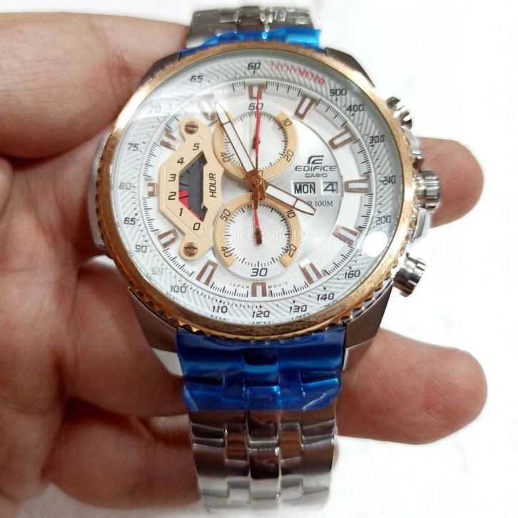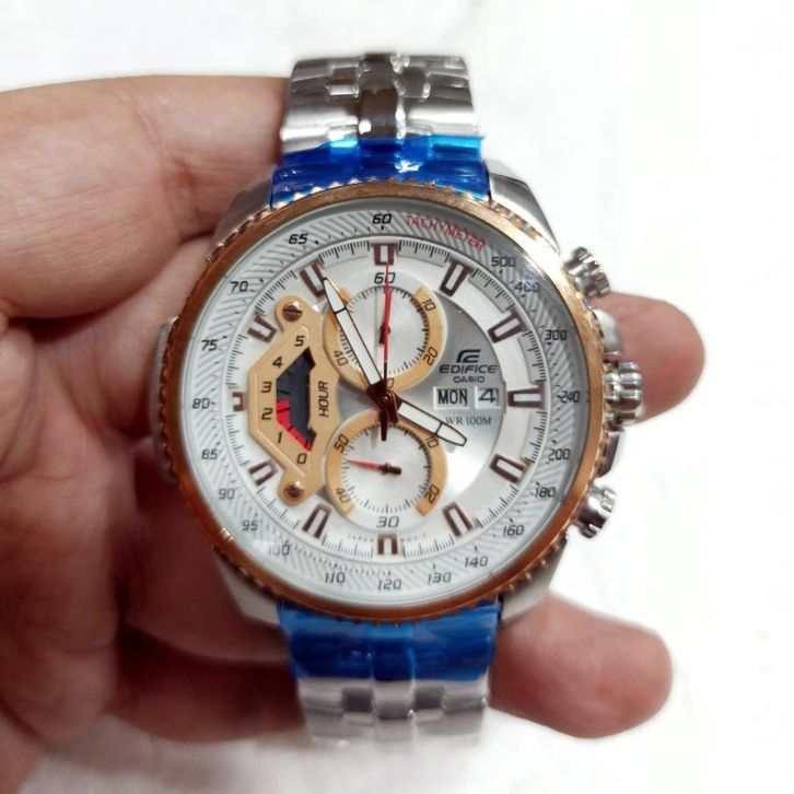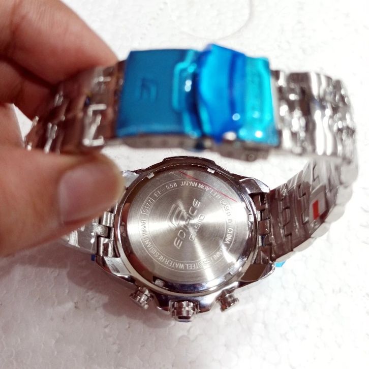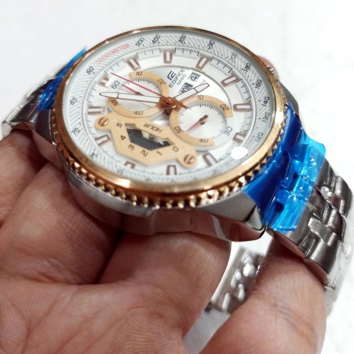 JAM TANGAN PRIA CASIO EDIFICE EF-558D-7A SILVER DIAL WHITE YELLOW STAINLESS STEEL FREE ONGKIR - FREE BOX