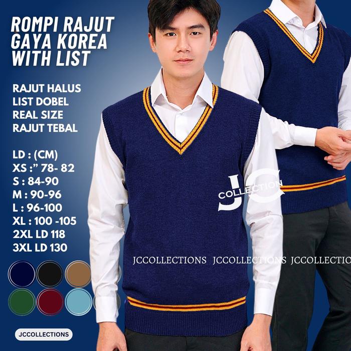 Rompi Rajut Pria Korea Style List Kuning /Rompi Rajut Pria Korea List Kuning / Vest Knit Rompi