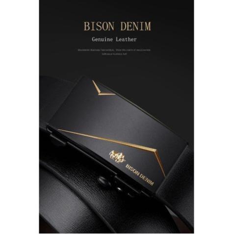 Ikat Pinggang Pria Kulit SQIU Kepala Gesper Asli Bison Denim Original Elite Auto Buckle Fashion