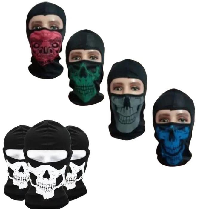 Paket 6 Pcs Balaclava Buff Masker Ninja Full Face Motif Loreng Tengkorak Hitam Polos Motorcycle - 6 NINJA HITAM