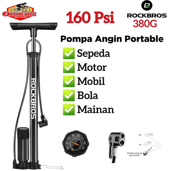 TERLARIS POMPA BAN SEPEDA MOTOR BOLA MOBIL ROCKBROS PUMP 380G 160 PSI
