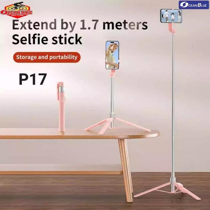 TERLARIS OCEANBLUE TONGSIS BLUETOOTH TRIPOD HP SELFIE STICK PINK P17 170CM REMOTE SHUTTER LIVE STREAMING KOKOH P17 NO LED PINK
