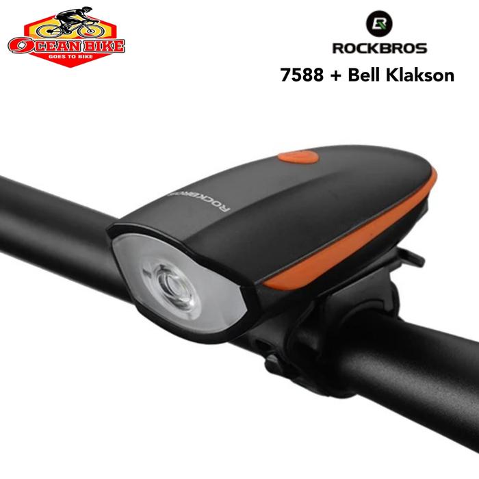 TERLARIS LAMPU SEPEDA DEPAN ROCKBROS RECHARGE WATERPROOF 400 LUMEN NOT CAT EYE 7588 ORANGE