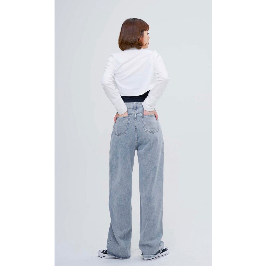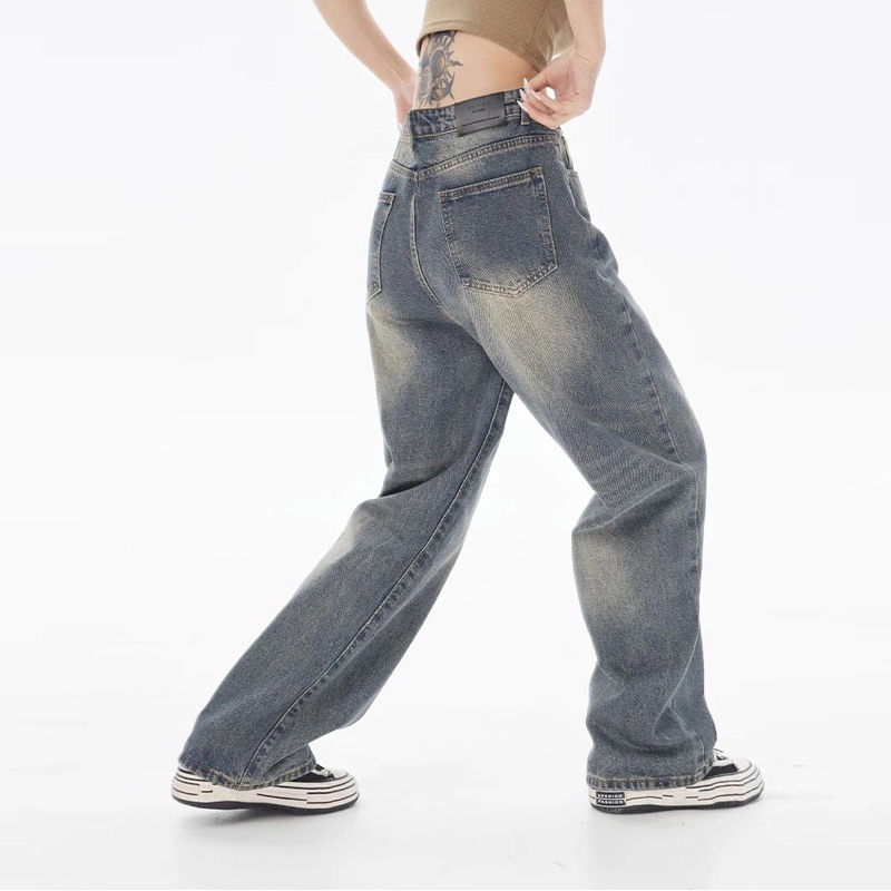 Biru retro Highwaist Celana Jeans Baggy Loose Jeans Wanita Gombrang Skena Jeans Unisex Gombrong Kekinian