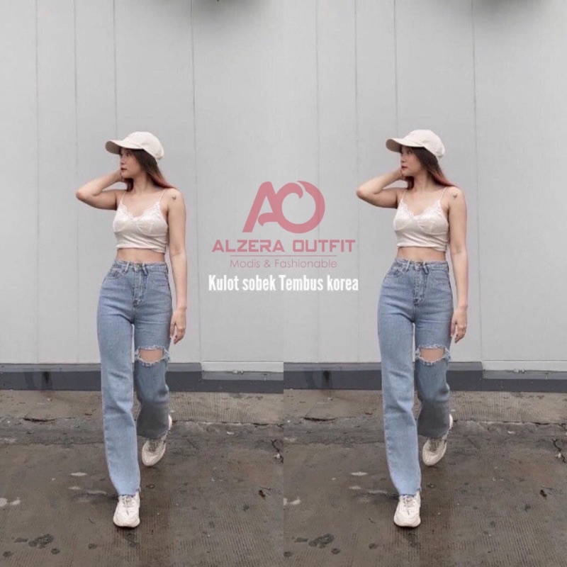 HIGHWAIST RIPPED JEANS KULOT LOOSE SNOWBLUE BLANK 27-34 BY ALZERA