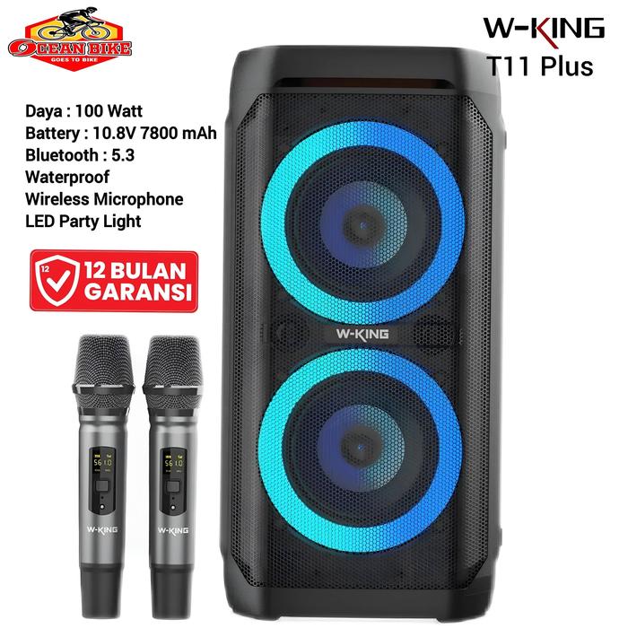 TERLARIS WKING T11 100W SPEAKER KARAOKE 2 MIC WIRELESS BLUETOOTH WATERPROOF WKING SUPER BASS