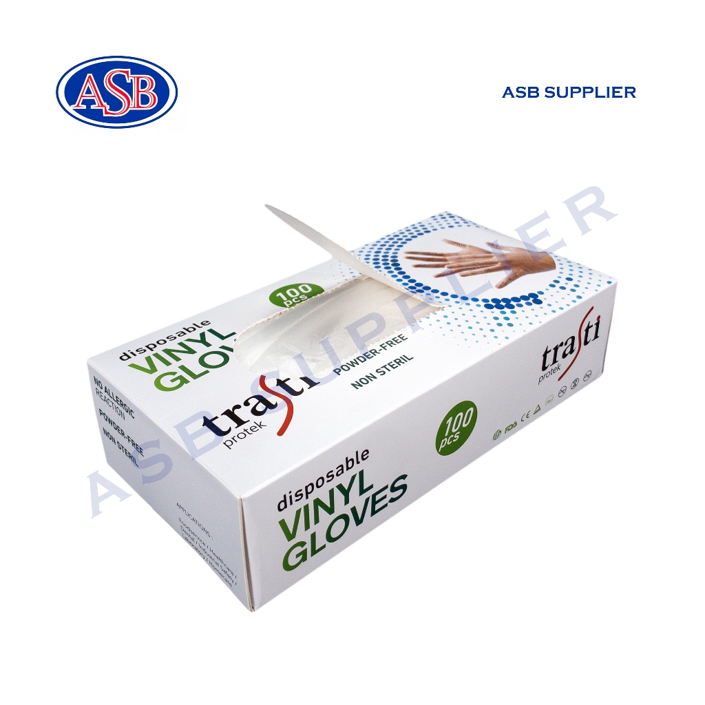 Sarung Tangan Karet / Vinyl Gloves TRASTI Size M dan L (100 Pcs)