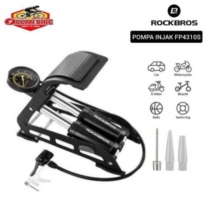 TERLARIS ROCKBROS POMPA SEPEDA MOTOR INJAK BAN MOBIL BOLA 160PSI PORTABLE FP4310S DOUBLE SILINDER PUMP ANGIN 2 TABUNG