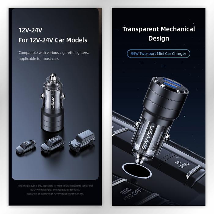 USAMS C36 Car Charger Mini 95W A+C Transparent Aluminum Alloy