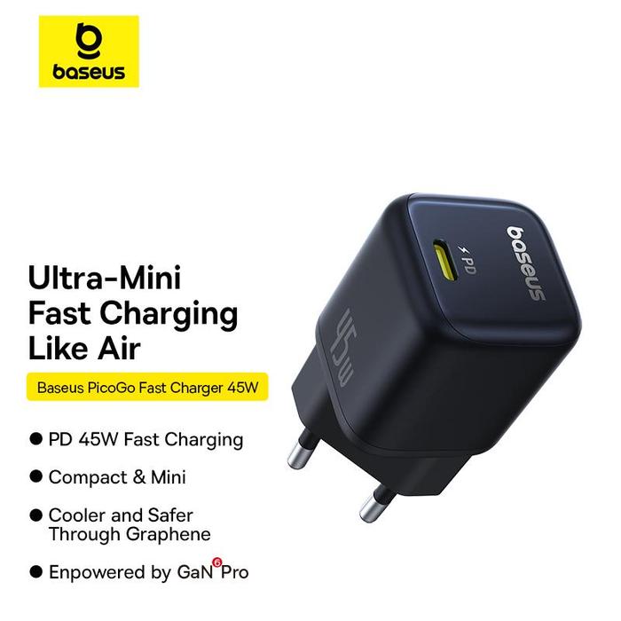 Baseus Picogo Wall Charger Mini Adaptor Gan6 Fast Charging 1c 45w EU