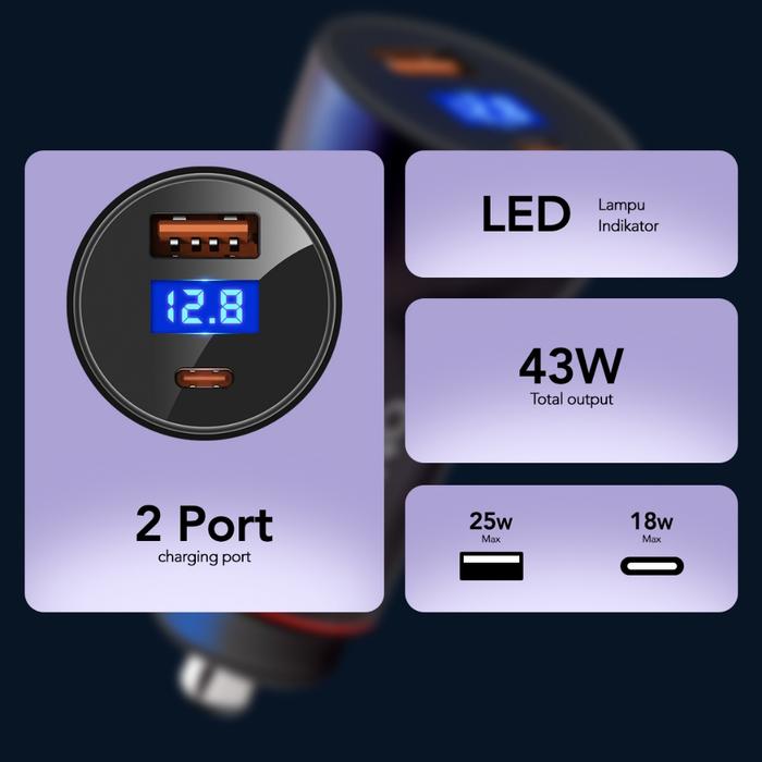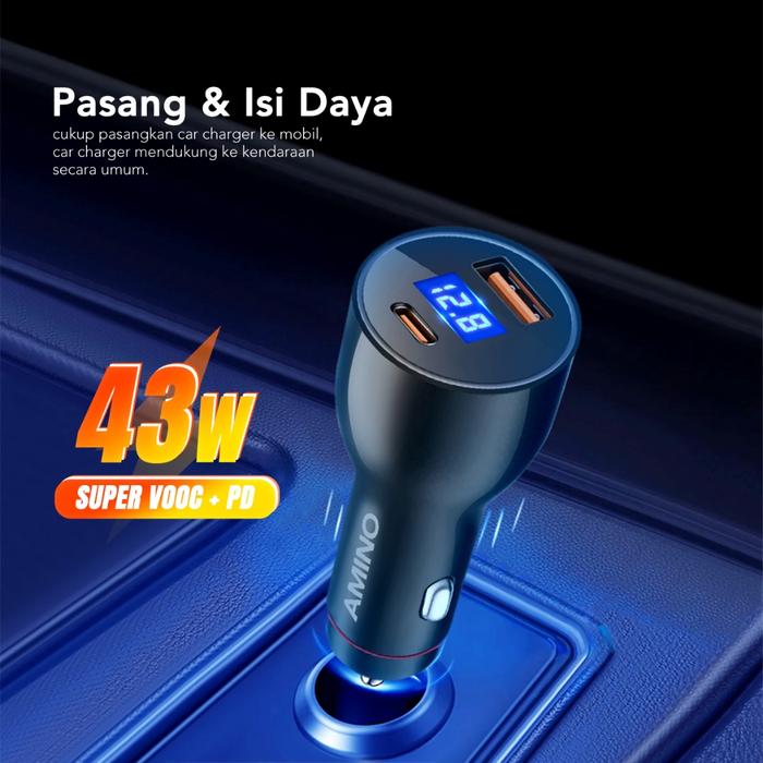 AMINO Car Charger 43W Type-C PD+USB Mobil Quick Charge 3.0 / PD3.0 / 2 Ports LED Screen For xiaomi