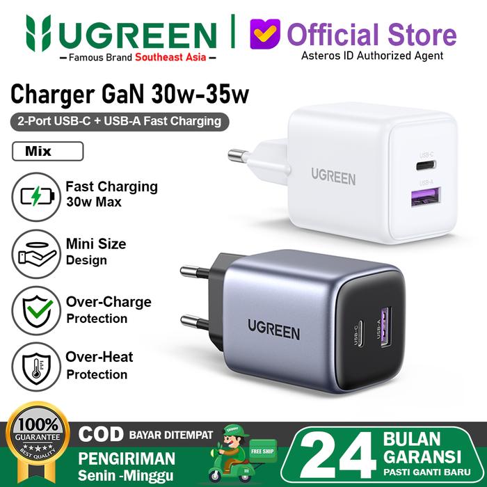 UGREEN Kepala Charger Dual Port USB A + USB Type C Fast Charging 30W 35W