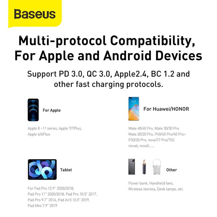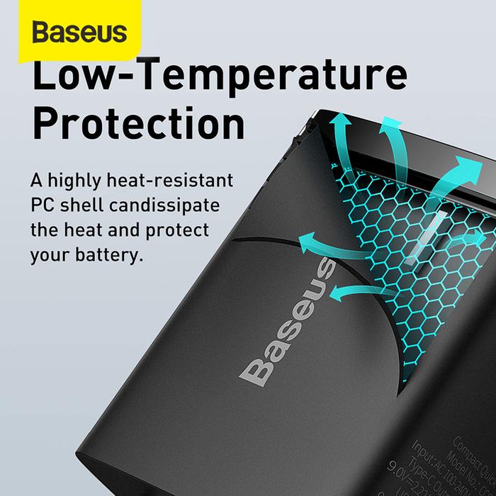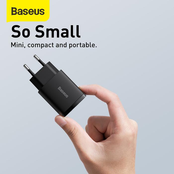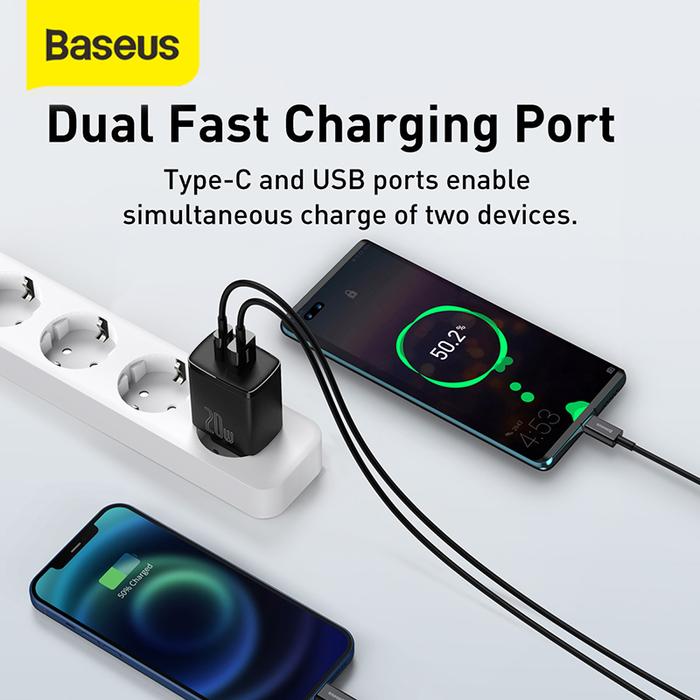 Baseus Kepala Charger HP Quick Charger QC3.0 TypeC+USB 20W Pd Adaptor Colokan HP Fast Charging Black