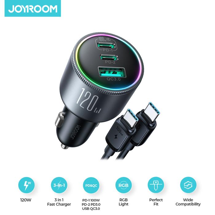 JOYROOM CCN07 Car Charger Fast Charging 120W 3-Port 2PD+1QC3.0