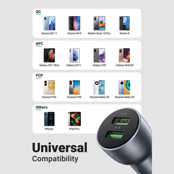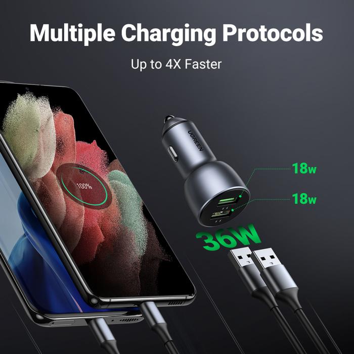 UGREEN Car Charger Mobil iPhone 14 13 12 11 10 X Dual Port 30W 36W PD QC Fast Charging