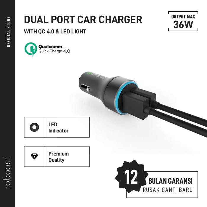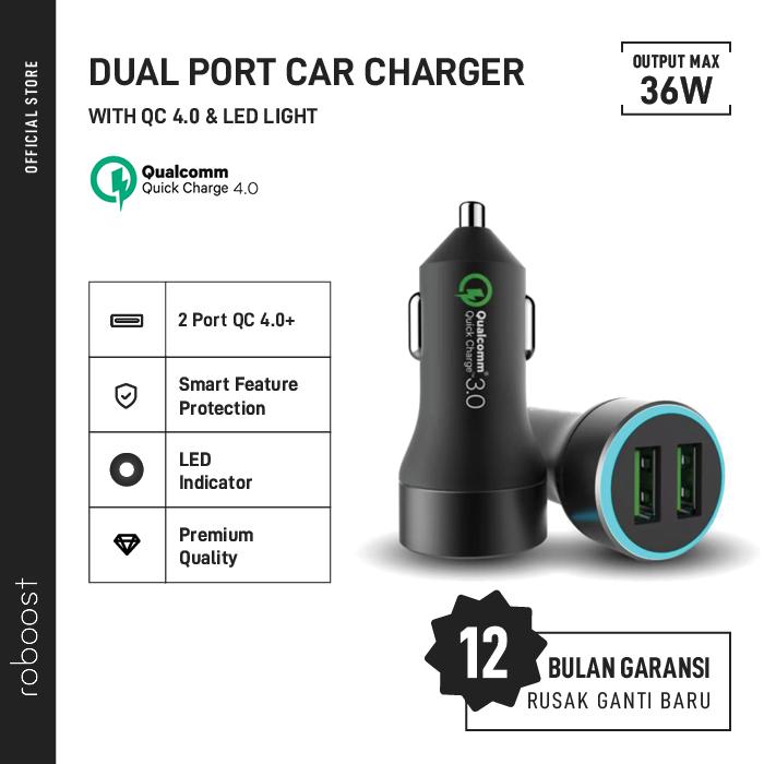 roboost Car Charger Mobil Dual Port MAX 36W QC 4.0 3.0 Fast Charging Support AFP FCP