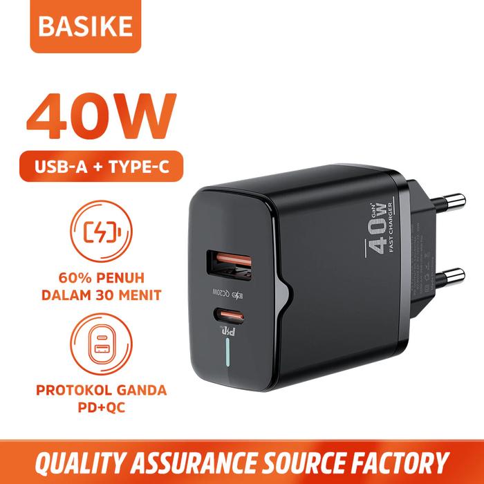 Basike Kepala Charger USB Type-C Fast Charging PD+QC 40W for iPhone Xiaomi Samsung Adapter Hitam