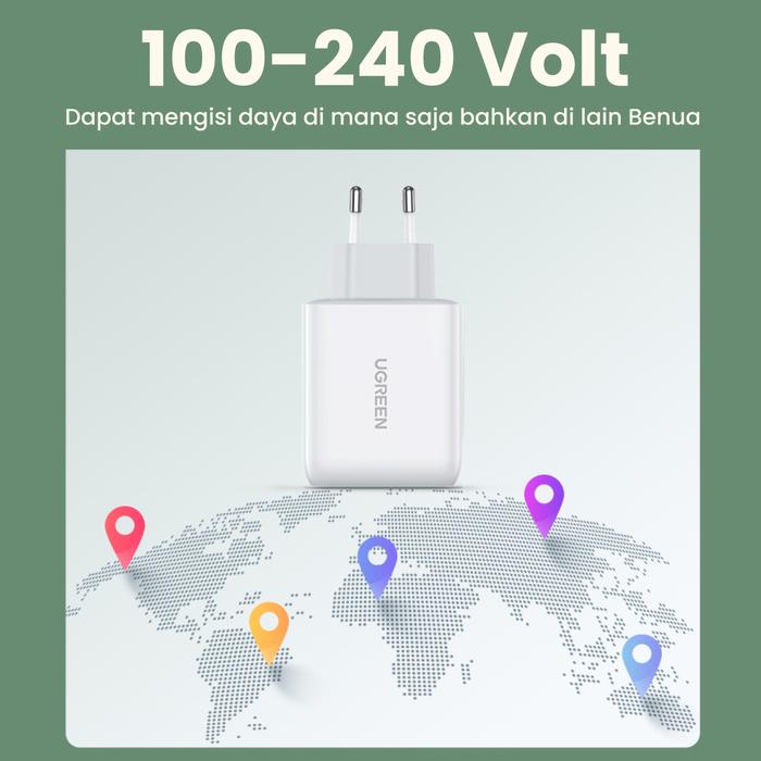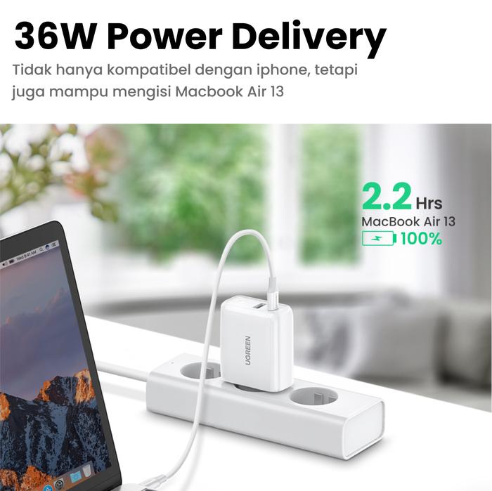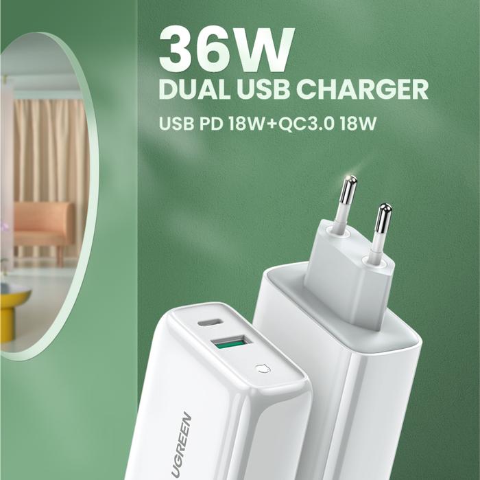 Kepala Charger iPhone Samsung Adaptor Dual Port UGREEN 38W PD QC Fast Charging USB A Type C