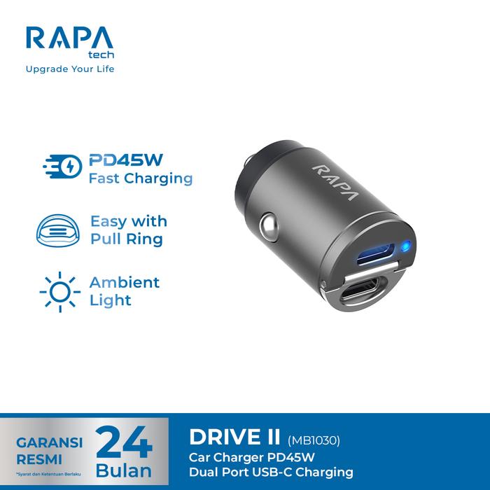 RAPAtech Mobile Charger DRIVE I Fast Charging (QC+PD30W) Drive II 45W - Dual Port Aluminium Charger