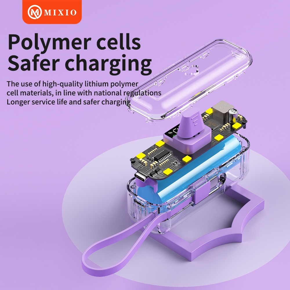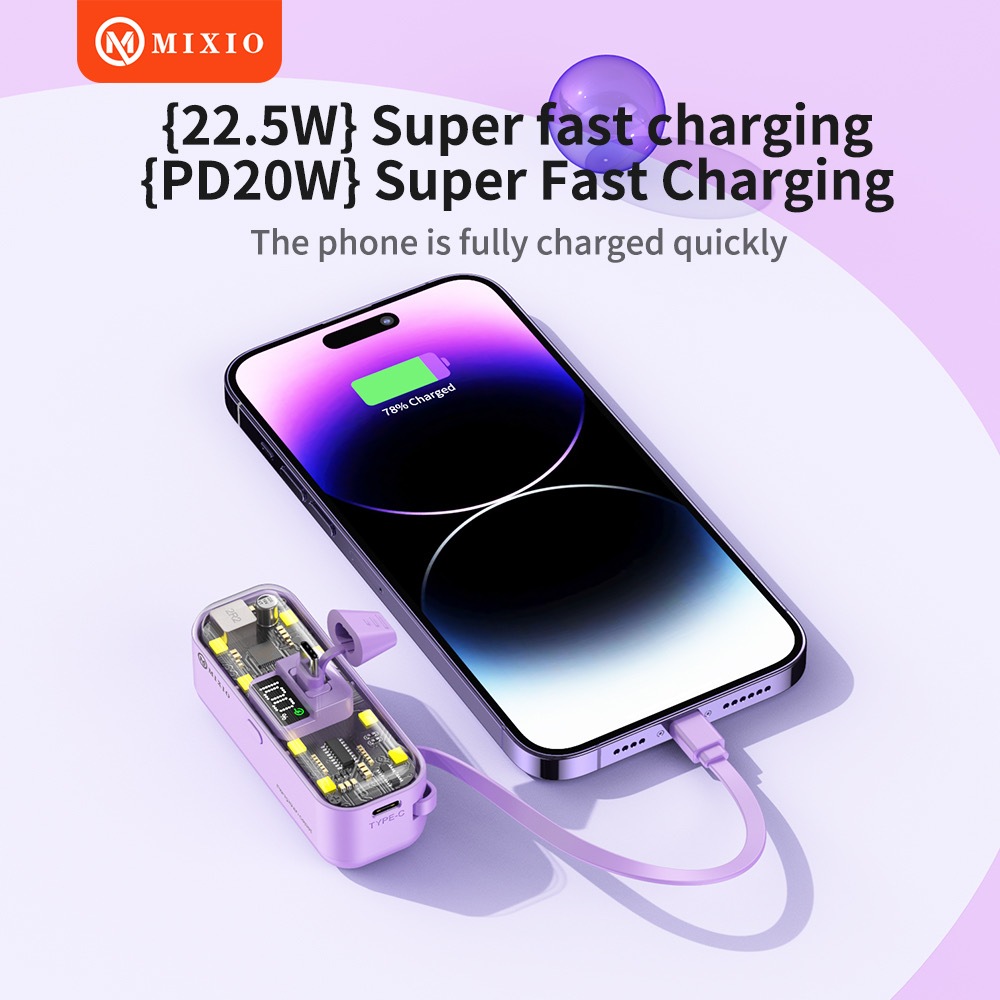 MIXIO MP-04 Powerbank 5000mAh Portable Mini Transparan Lightning ios Type C PD Fast Charging With LED