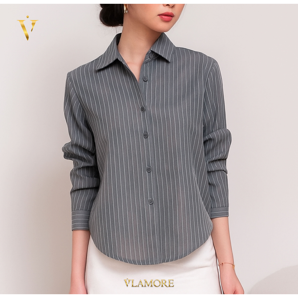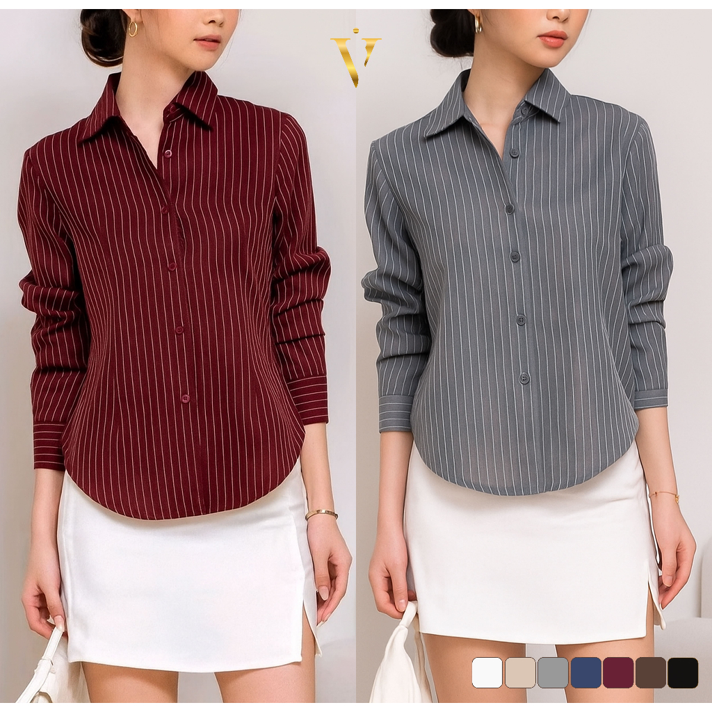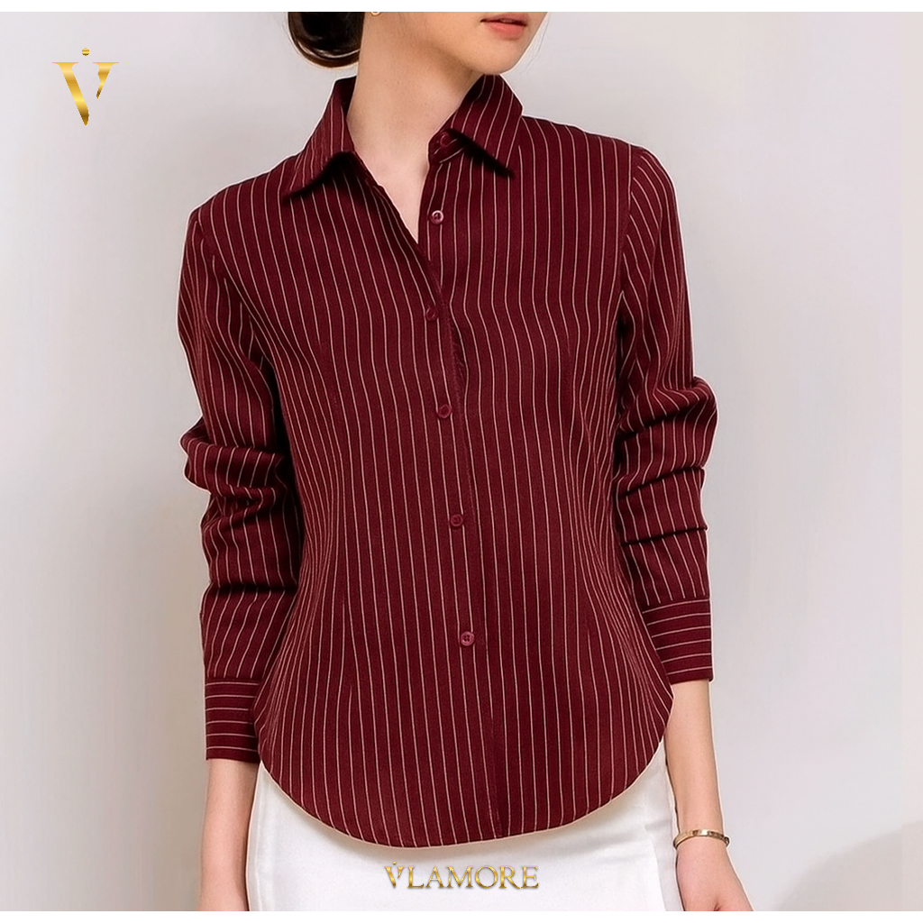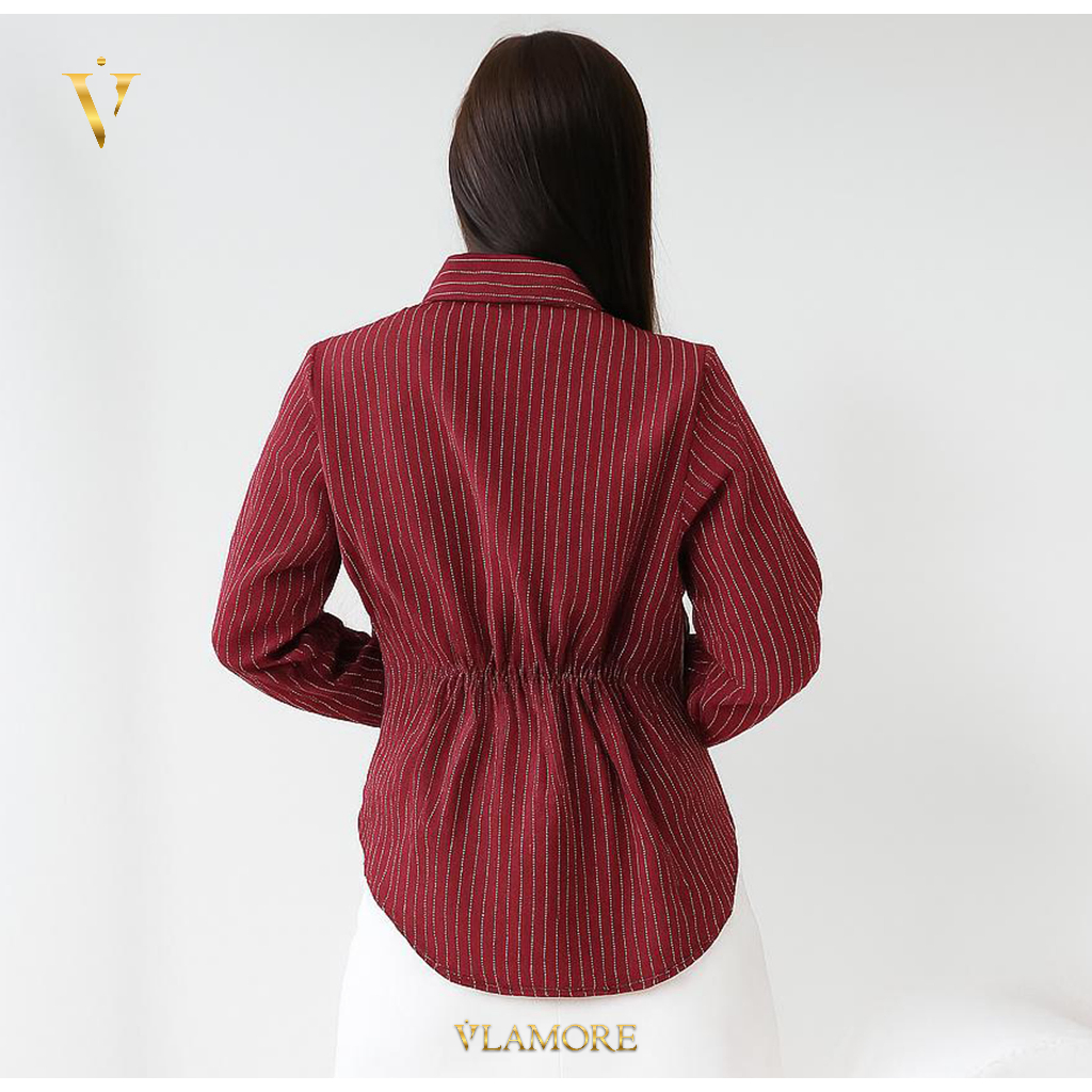 AMOR FITTED SHIRT | KEMEJA WANITA LENGAN PANJANG FORMAL CASUAL MOTIF SALUR FITTED ANTI KUSUT