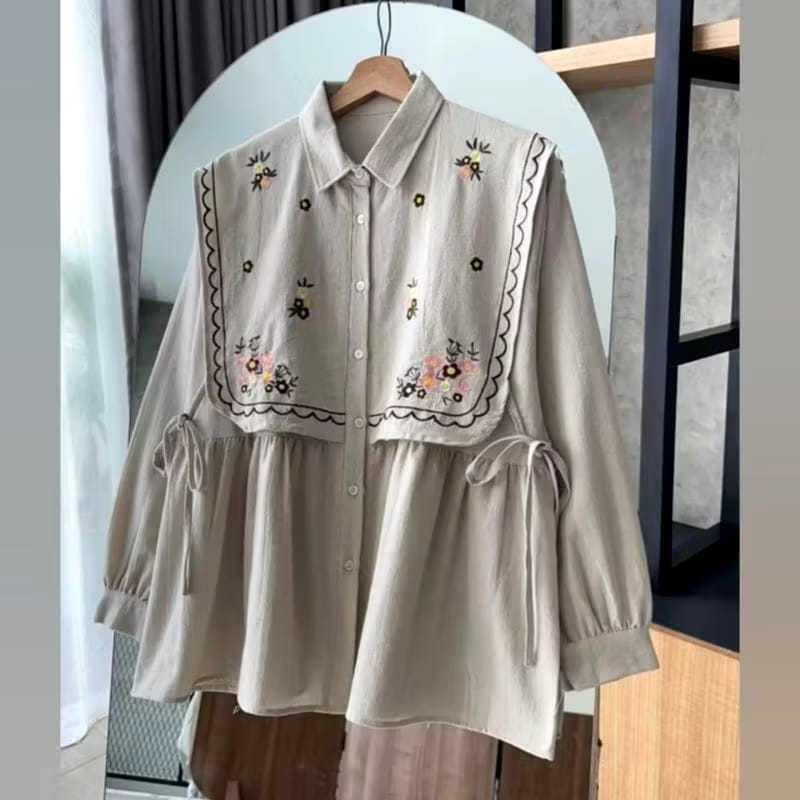 KEMEJA WANITA BORDIR BUNGA BAJU ATASAN WANITA TERBARU
