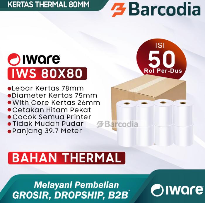 TERLARIS ( 1 DUS ) KERTAS PRINTER THERMAL 80X80 MM 80MM IWARE IWS 79X75MM