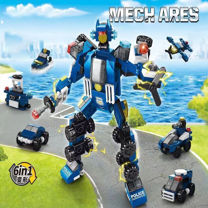 ZhengBo Mainan Edukasi Robot Polisi Blok Bangunan 3D Puzzle Susun Mainan Anak Laki-laki