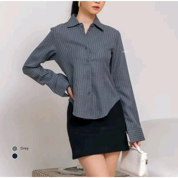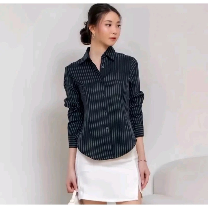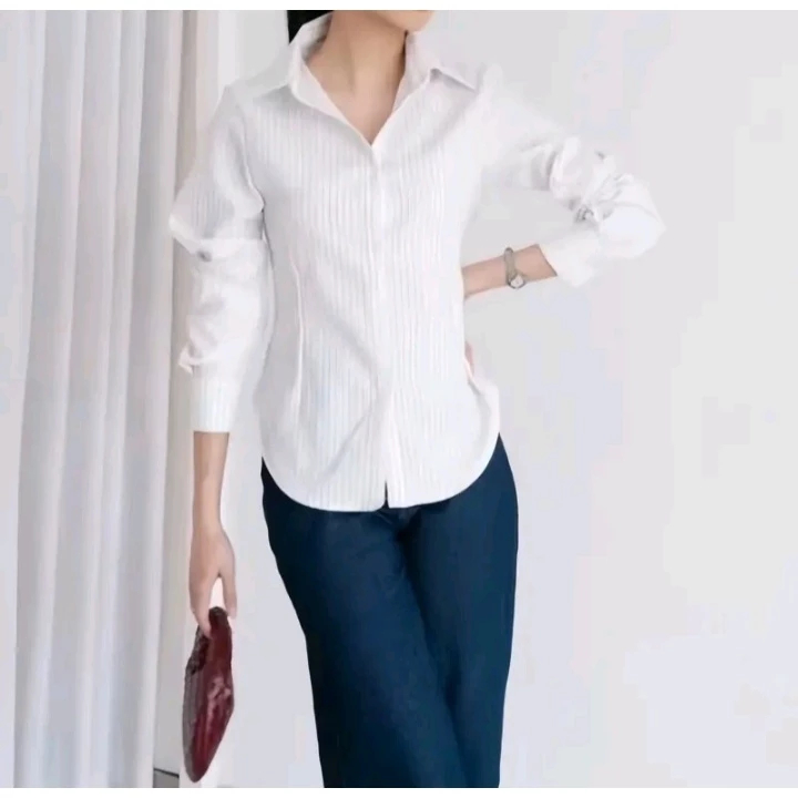 KEMEJA WANITA FITTED BODY LENGAN PANJANG SEMIWOLL